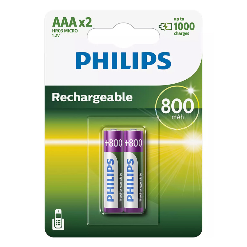 PHILIPS επαναφορτιζόμενη μπαταρία R03B2A80 800mAh, AAA HR03 Micro, 2τμχ