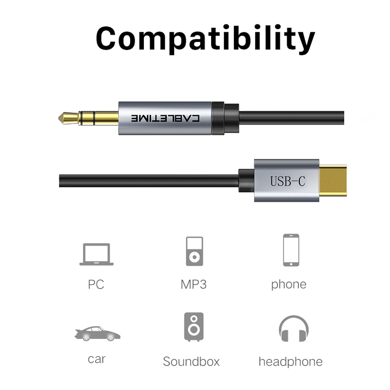 CABLETIME καλώδιο AUX USB Type-C σε 3.5mm C160, 1m, μαύρο