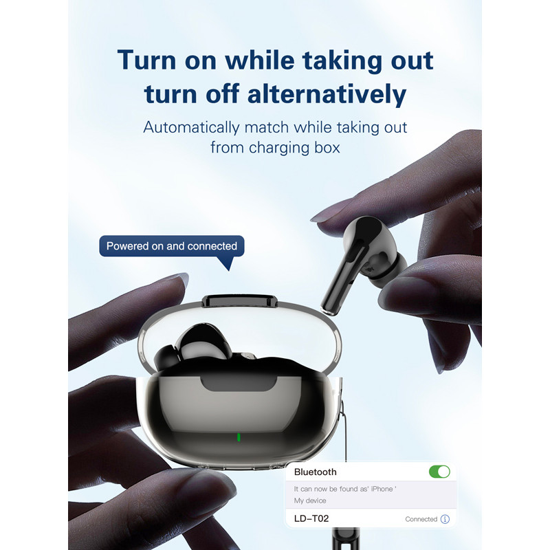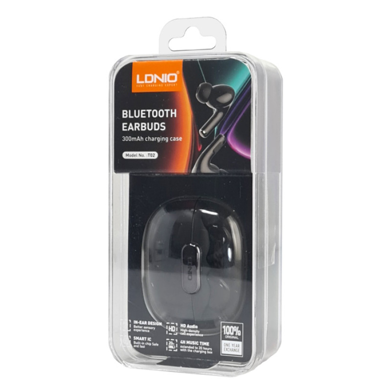 Τα true wireless earphones T02 της LDNIO προσφέρουν κορυφαία ποιότητα ήχου και άριστη εφαρμογή στο αυτί. Είναι συμβατά με tablets, smartphones και άλλες συσκευές που διαθέτουν Bluetooth.