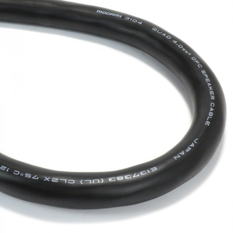 Το καλώδιο Mogami 3104 έχει σχεδιαστεί για να παρέχει υψηλή απόδοση ήχου. Ενσωματώνει 4 αγωγούς χαλκού OFC με διατομή 4 mm² (12AWG) και διαθέτει αποτελεσματική μόνωση από PVC. Εξασφαλίζει επομένως εξαιρετική αγωγιμότητα του ηχητικού σήματος ενώ περιορίζει σημαντικά τις παρεμβολές και συνεπώς τον παρασιτικό θόρυβο. Εξασφαλίζει έτσι μια ακριβή και διαφανή αναπαραγωγή σήματος. Το περίβλημα από PVC παρέχει επίσης πολύ καλή ευελιξία για εύκολη συναρμολόγηση και εγκατάσταση.