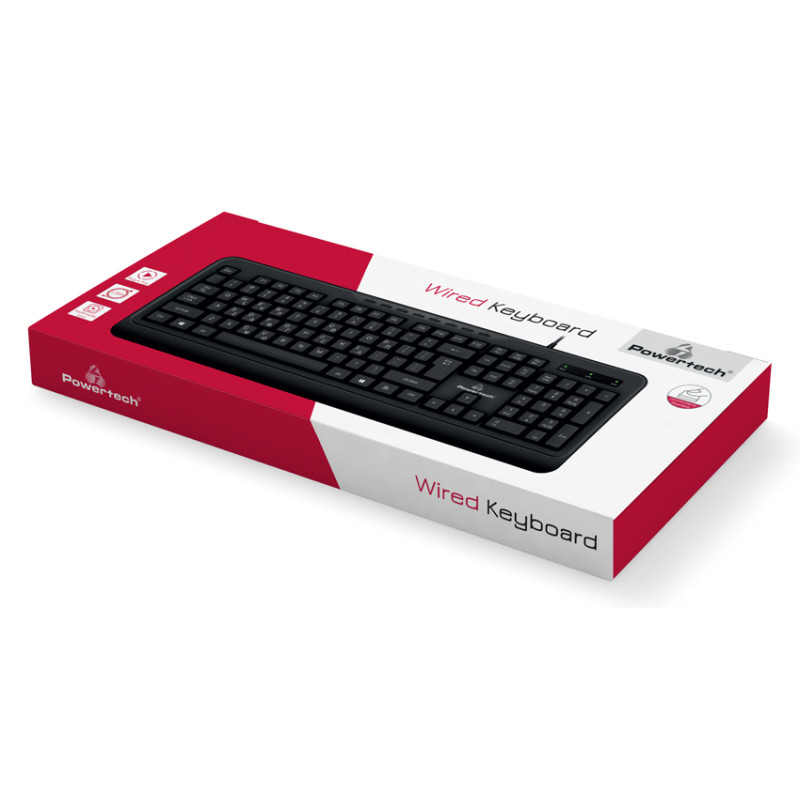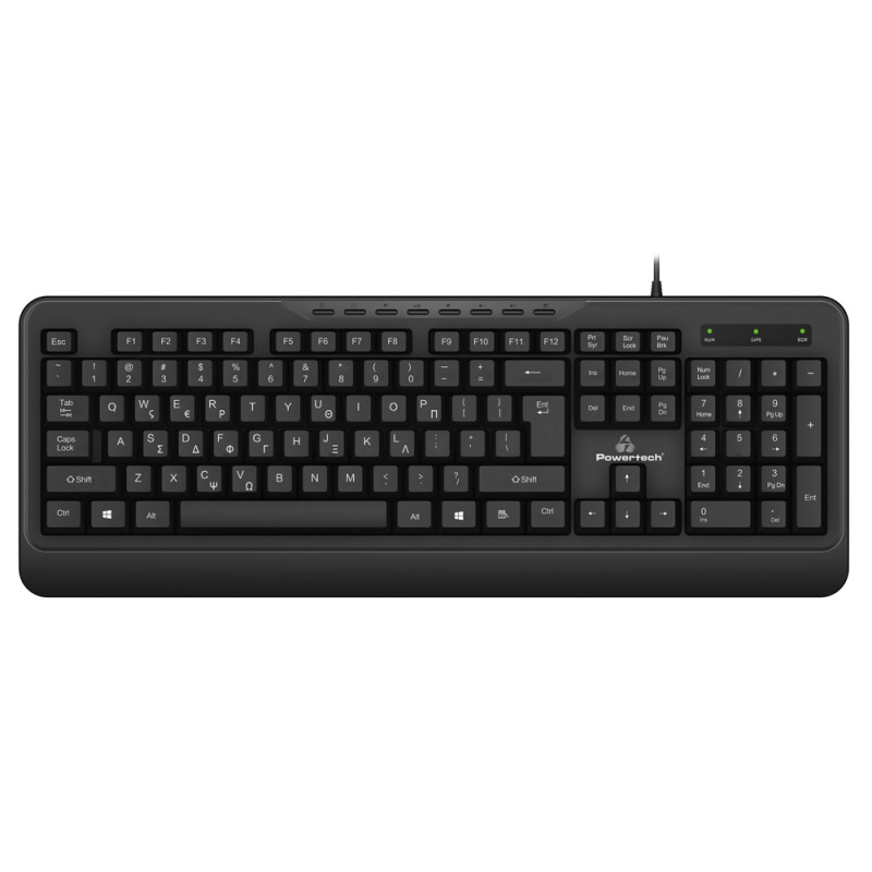 POWERTECH πληκτρολόγιο PT-1066, ενσύρματο, multimedia, EN/GR, μαύρο