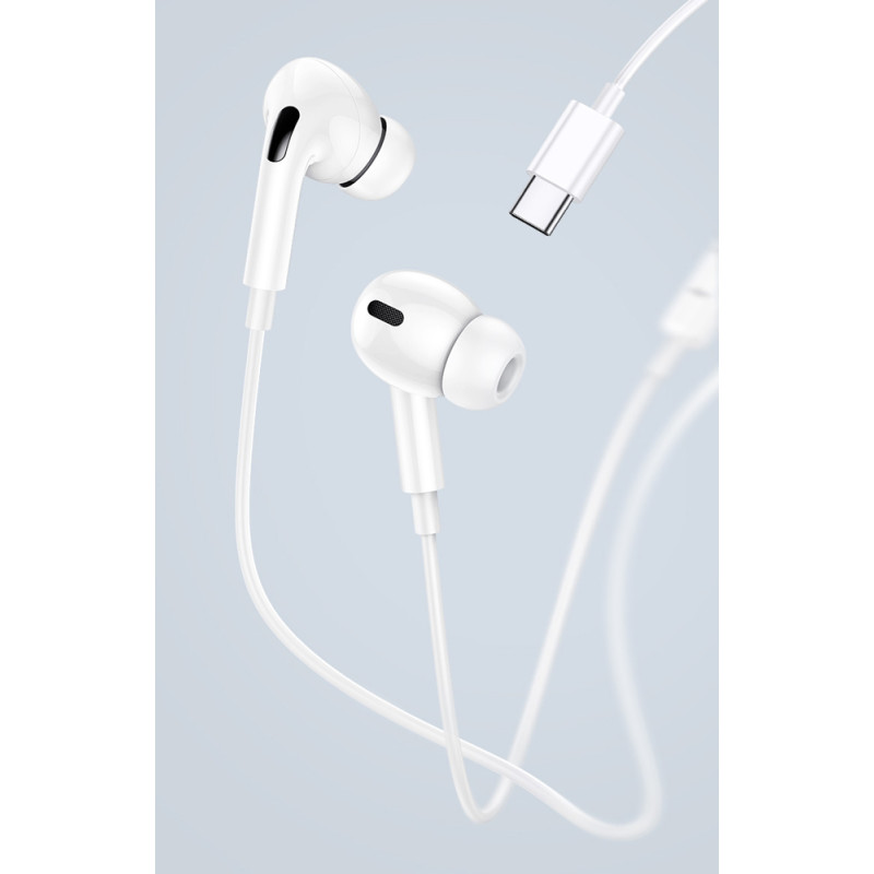 USAMS earphones με μικρόφωνο EP-41, USB Type-C, 10mm, 1.2m, λευκά